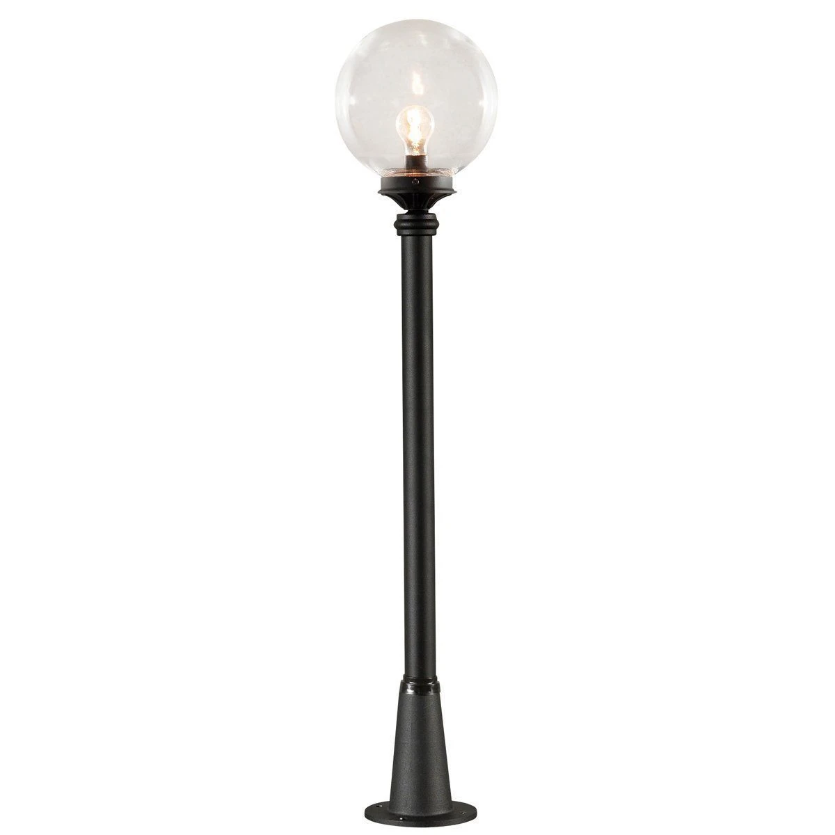 This product offers simplicity, both traditional and modern in design and gives 360 degrees of light. The fitting is made of cast aluminium and comes with a clear acrylic globe, and is able to accept low energy bulbs.