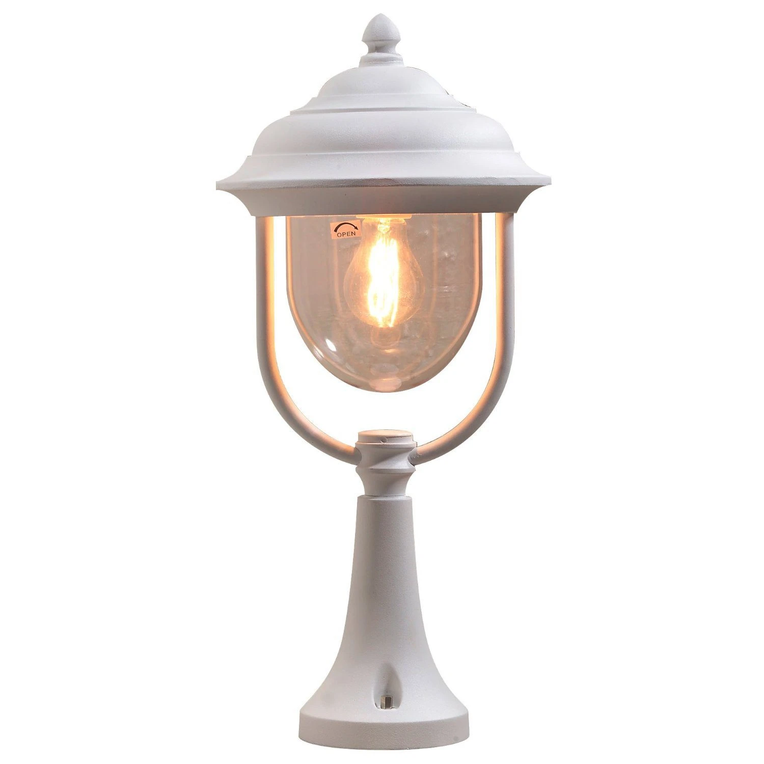 This lamp post bollard in a lacquered aluminium finish, is a traditional style lanterns pedestal pathway light set.