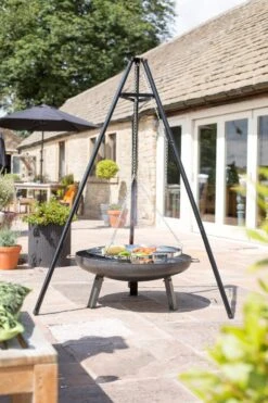 Transform your La Hacienda fire pit with the versatile Tripod with Hanging Grill.